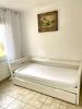 Appartement situé au cinquième étage composé d?une grande entrée,placard avec porte coulissante,séjour avec cuisine américaine équipée,chambre,lit,TV,salle de douche italienne,wc